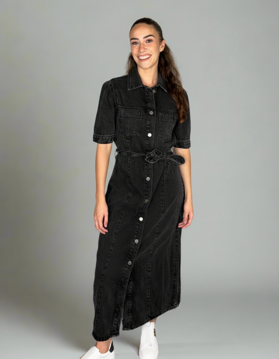 Denim Button Through Belted Dress